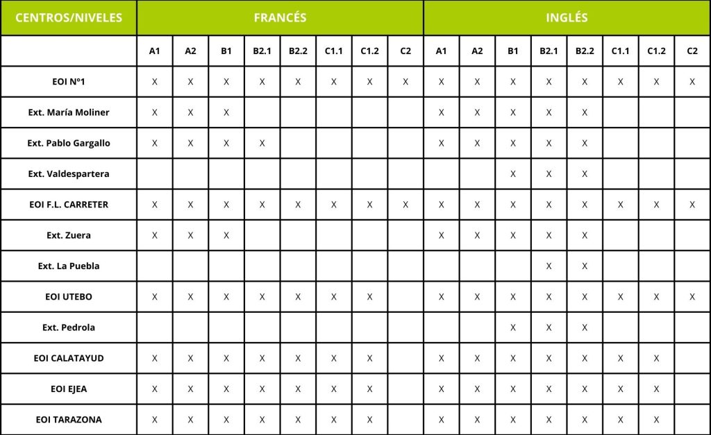 Actualmente, no existen ni sedes, ni extensiones de esta institución en la Comarca de Valdejalón. Si se quiere acceder a estas enseñanzas o títulos, es necesario acudir a las Escuelas Oficiales de Idiomas que hay en Zaragoza (ciudad y provincia), que indicamos en la siguiente tabla: