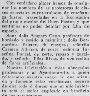 Desde aproximadamente 1925, de septiembre a junio y de cuatro a seis y media de la tarde funcionaba la Escuela Municipal de Aprendizaje (o de aprendizas) en la planta baja del edificio, que pretendía de dotar de herramientas y habilidades a mujeres (sobre todo jóvenes y viudas) en situación precaria para que pudieran ser independientes. La matrícula era gratuita.