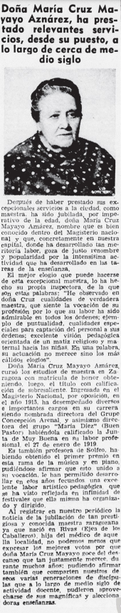 Sobrina de Ana Mayayo, estudió Pedagogía en la Normal de maestras de Zaragoza a principios del siglo XX.