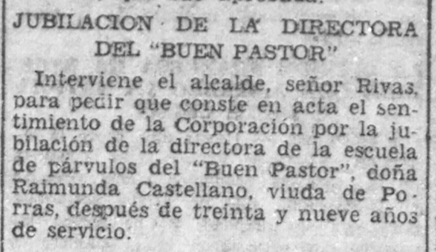 En 1927, tras el fallecimiento de la directora de párvulos de Buen Pastor Francisca Naval, se le encarga a ella su dirección, que ejerció hasta su jubilación, casi 20 años después.