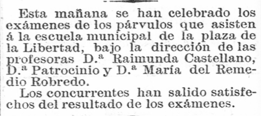 En 1900 dirigía la escuela de párvulos de la plaza de la Libertad y en 1924 la del Arrabal de la calle Villacampa.