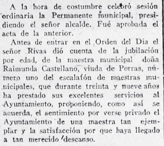 Se jubiló en 1940, tras 39 años de servicios en Zaragoza capital.