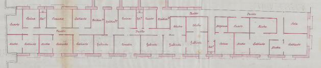 Plano de las viviendas de los maestros antes de la rehabilitación del edificio (Archivo de Urbanismo de Zaragoza).