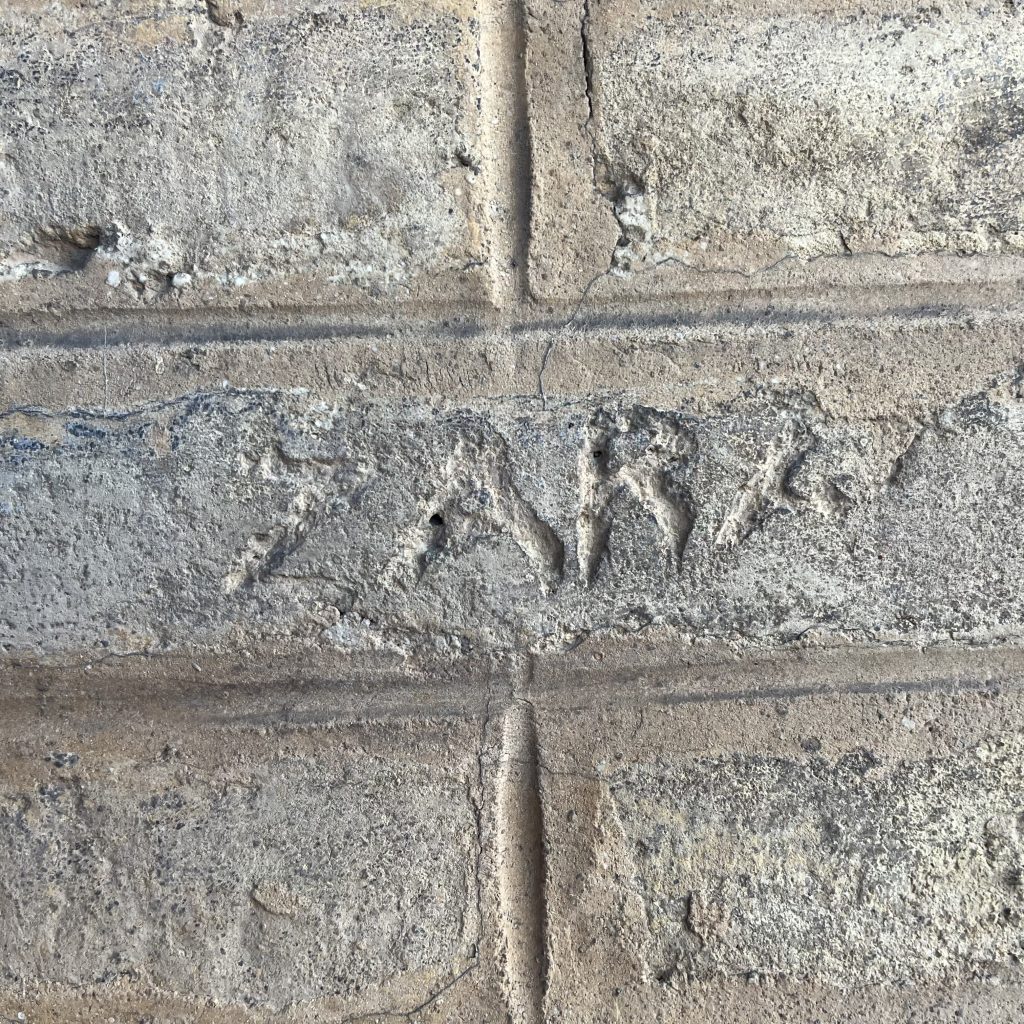 En la parte exterior de algunos de los balcones de esta planta pueden verse inscripciones que, a modo de graffiti, hicieron los/las habitantes de estas viviendas.