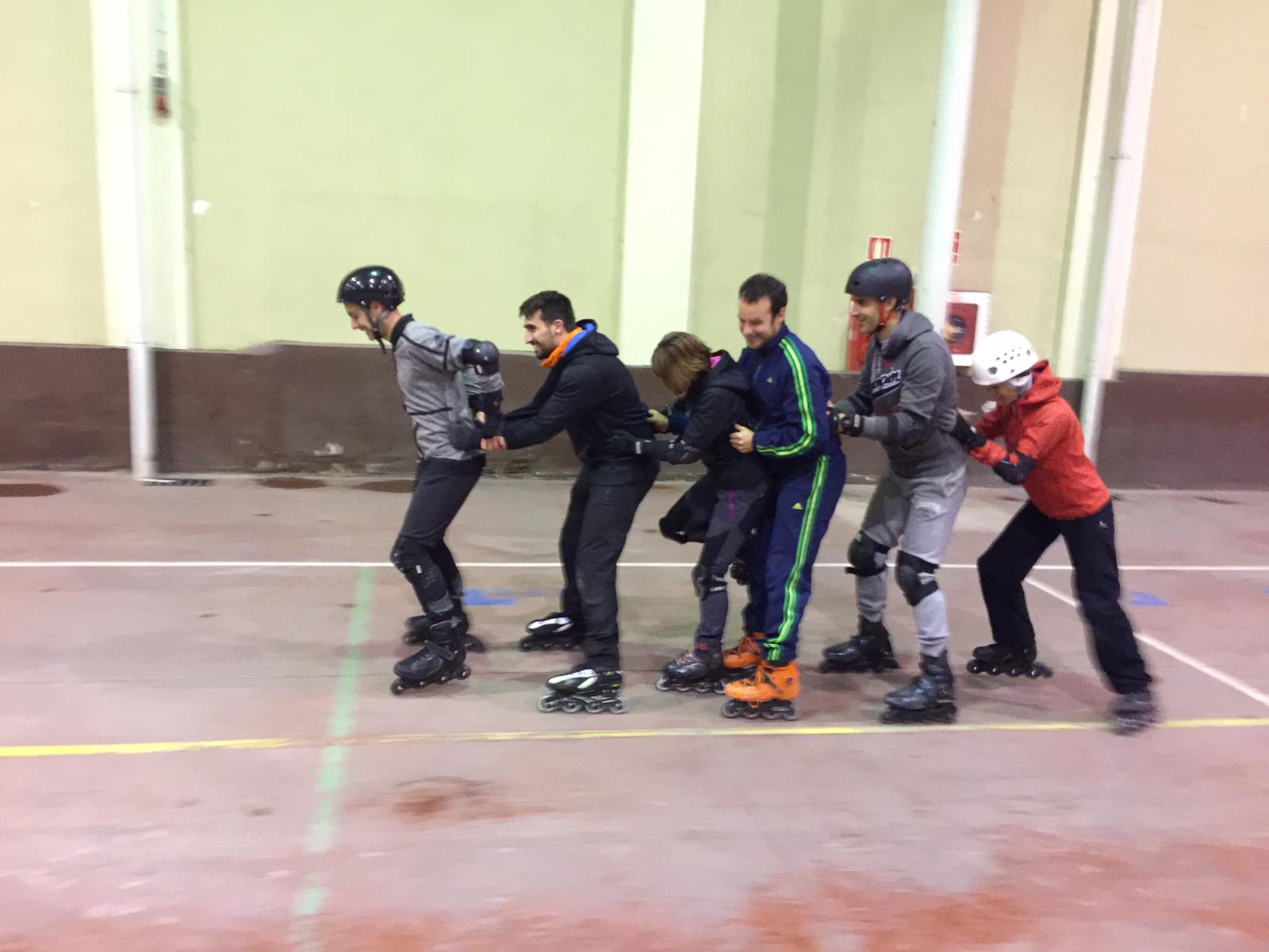 No hay mejor manera de aprender que trabajando en equipo, y gracias Andrés, Ana P. y Alberto, nuestros profes de patines del seminario, hemos llevado a cabo una sesión más que unida a la del curso pasado mejora nuestro nivel. Además de aprender, nos divertimos mucho con este trabajo cooperativo teniendo en cuenta los diferentes niveles del colectivo, lo que no fue un inconveniente a la hora de poner en marcha esta dinámica, divertida e interesante sesión con la que dimos otro salto de calidad patinando.